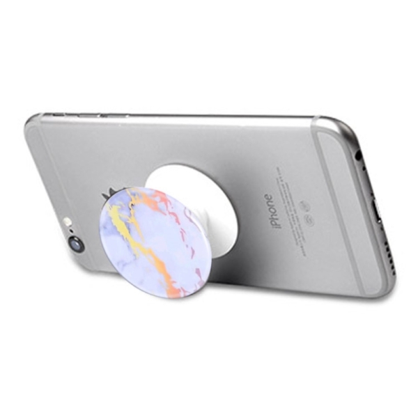 Expanding finger grip, earphone cord winder and stand.